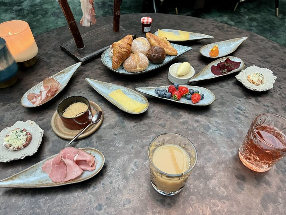 Om 9 uur gaat de wekker alweer. Douchen en dan een ontbijtje. Ook dat is een feestje in de Librije. Heerlijke broodjes, katenspek op een touwtje, vegetarische filet americain, carpaccio van biet, Spaanse ham, ossenworst, Parma ham, kaas, roerei met champignons, een zoete mini souflé, rabarbersap, perensap, en aardbeitjes en zo. Uiteraard heerlijke koffie. Ook dit is weer bijzonder smakelijk natuurlijk. Daarna alles weer inpakken, uitchecken en op huis aan. Selene en Jordi zijn net vertrokken, naar zijn ouders om zijn verjaardag te vieren. Ik herstel de server zodat je dit kan lezen. En belangrijker www.hersilia.nl is ook weer in de lucht. We doen rustig aan vandaag. Siel wandelt naar de mark en de Appie voor wat boodschapjes. En zet weet inmiddels dat we morgen een borrel doen ter ere van haar verjaardag. Na gisteren en vandaag kon dat natuurlijk niet meer geheim blijven. ’s Avonds aan de Paratha’s met kaas. En wat schaatsen kijken.