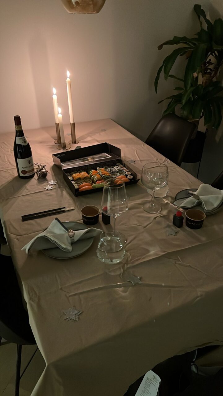 Rare dag vandaag. Siel gaat nog wat boodschappen doen. Voor het eerst in 31 jaar dat we geen gezamenlijke kerstavond vieren. Vanwege Jordi natuurlijk, bij wie het herstel goed verloopt. Maar hij is nog niet aan het tennissen. Morgen halen we Kerstavond in bij Selene en Jordi in Utrecht, en met Sol en Dirk natuurlijk. Maar het blijft vreemd zo met zijn tweeën op kerstavond. Siel gaat nog wel wat hapjes halen op de markt. In Utrecht aan de Sushi, wij doen eind van de middag een luxe borrel annex avondeten en Sol & Dirk gaan uit eten bij Fuji House. Wij beginnen rond 17 uur aan het laatste, nieuwe seizoen van Emily in Paris, (die in Rome zit!). Binge-watchen dus, 10 Afleveringen te doen. Tis hard werken, maar gelukt, voor middernacht klaar.