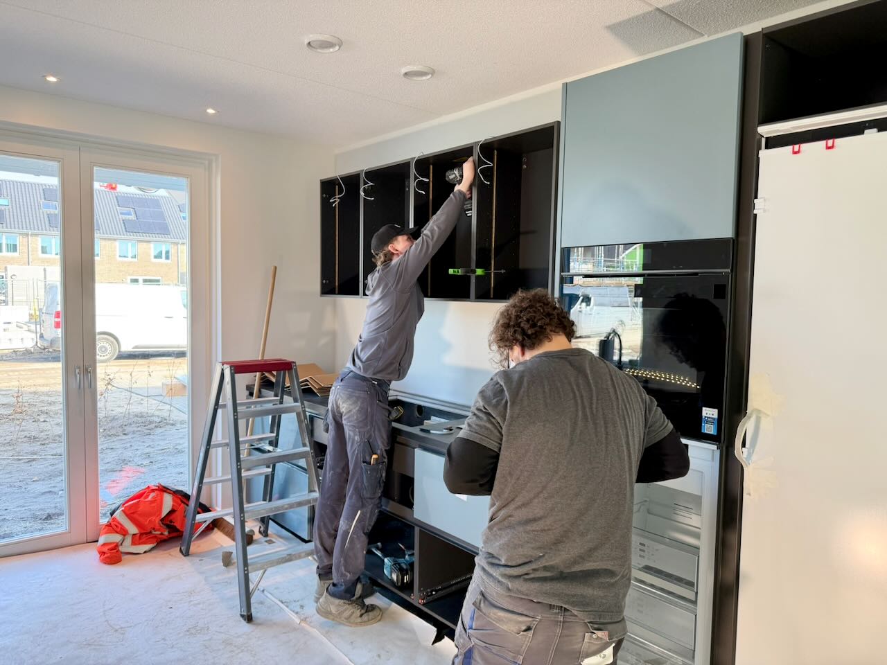 Vandaag gaat de wekker al om 06:00, want om 07:00 wordt de keuken geleverd. Tenminste dat was de bedoeling. Om 06:22 krijg ik een belletje dat de vrachtwagen er al staat. Dus dan moeten ze maar even wachten dan. Als ik echter om 06:50 voor de deur sta in Lelystad is er niemand te bekennen. Ik kan hem niet bellen, dus wachten. Blijkt ie op het verkeerde adres te staan. Dus beginnen ze om 07:30 met het binnenbrengen van de keuken. De monteurs die de keuken in elkaar gaan zetten komen even later. Wat een boel spullen, Tegen 08:30 start de montage, en dat gaat langzaam maar gestaag en heel netjes. Ondertussen zijn ook de schilders weer boven aan de slag te gaan. En rond 10 uur komt de Viola monteur voor de warmtewisselaar, wel een aardige man, ondanks zijn Feyenoord vlaggetje aan zijn autospiegel. Je kan niet alles hebben. Hij onderzoekt en checkt alles 3 keer. Volgens hem zit het in de computer, en die vervangt ie in een wip. En wat denk je; daarna werkt alles. Nog eens 3 keer checken maar we hebben warm water! Siel is in Almere achtergebleven, daar komen twee monteurs om het defecte rolluik te fixen. Er blijkt een nieuwe motor in te moeten. Die heeft na 25 jaar de geest gegeven. Een tegenvallertje dus, maar wel blij dat ie het weer doet, net een maand voor de overdracht. Voor de rest van de dag afwachten en kijken hoe vakmensen hun werk doen. ‘s Avonds voor de buis; Zilver voor de Vrouwen achtervolging terugkijken en de 1e aflevering van een Agatha Christie mysterie gezien.