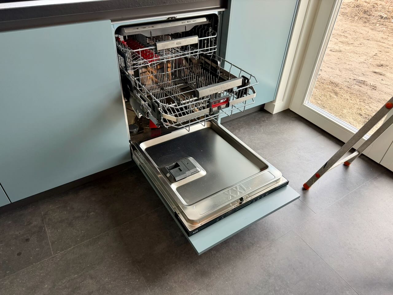 En wederom de wekker op 06:45, want om 8 uur staan de schilders voor de deur. De laatste loodjes nog en dan alles weer opruimen. Het ziet er werkelijk supermooi en strak uit. Met name als je nagaat dat ze op 4 meter hoogte moesten werken. Ik raad Pro Painting aan voor al je schilder en behang werkzaamheden. Siel gaat aan het poetsen , en ik vind het het tijd om alle keukenboekjes te verzamelen en te gaan lezen. Apparatuur registerenen uitproberen. Dat laatste gaat niet helemaal goed. De vaatwasser heeft een lift voor de onderste lade. Handig, want dan hoef je niet zo te bukken. Maar ik krijg het voor elkaar om de boel te blokkeren. De lade zit halverwege en muurvast. Wie zijn 30 minuten bezig om te proberen het los te krijgen. Met behulp van de Service Desk en Youtube lukt het ook allemaal niet. Dus om een monteur gevraagd, die kan gelukkig 9 Maart (!) al komen. Dan gaan we even naar DoeMere, bij Bruynzeel langs om te kijken of er nog een regaalkastje aan de keuken geknoopt kan worden. Er blijkt nl. meer ruimte tussen het keukenblok en de bergingsdeur te zitten, dan verwacht. Dus daar kan nog wel een smal kastje. En ook gelijk gekeken naar een kast voor in de berging voor de wasmachine en de droger. En voor een kast in de slaapkamer. De PAX-kasten van Ikea zijn niet in kleuren die we mooi vinden zo te zien op de website. Maar die gaan we morgen in het echt bewonderen. Op de Olympische Spelen wint de 36 (!) jaar oude Kjeld Nuis het Brons op de 1500 mtr. Heel knap.