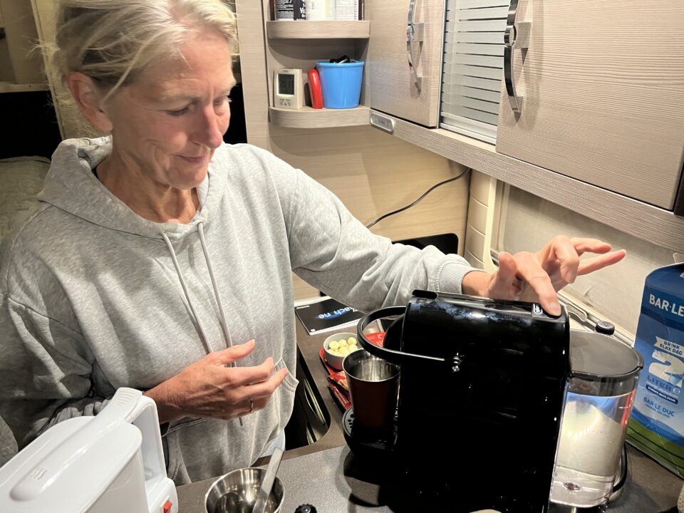Vandaag weer rond de 24 graden, en we doen rustig aan. Dagje bij de camper blijven. Alhoewel, ik ga op de fiets op pad om een nieuw koffiezetapparaat te zoeken. De oude lekt en na 2 kopjes is ook de lekbak vol. Dus die kan na 15 jaar wel vervangen worden. Volgens de Kaarten app is er een FNAC binnen 15 minuten. Niet dus, maar wel in de stad 25 minuten verderop. Alhoewel is kom een hele grote Carrefour Hypermarché tegen. En die hebben ook altijd veel keuze in non-food. En inderdaad ik kan kiezen uit een rode, een beige en een zwarte. Het wordt de laatste na overleg met het thuis/camperfront. Siel weer helemaal blij mee. Verder weinig doen behalve een beetje lezen en puzzelen.
