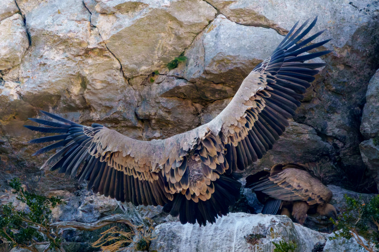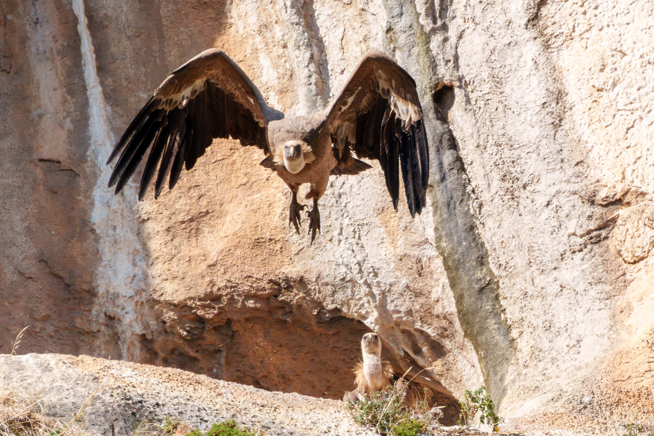 De dag begint met een warm stokbroodje maar ook met wat mist. Maar die trekt geleidelijk weer op, en tegen 12 uur gaan we op pad. Siel doet een wandelroute met 25% stijging en gaat naar de top van de berg, naar het kapelletje. Terug dezelfde weg want de andere kant ziet er een stuk mindere hoopvol uit, lees gevaarlijk langs het ravijn. Ik vermaak me inmiddels weer in de kloof bij de gieren. Iets andere instellingen van mij fototoestel, geen 1.4 converter en éénpoot mee. Maar wel steun zoeken aan wat palen die her en der verspreid staan in de kloof. Bij thuiskomst weer wat uit te zoeken; nu 400 foto’s waar er ‘s avonds toch nog 10 van overblijven. Blij met het resultaat. Om 17:30 uur even aan de borrel op het terras alhier, zoals elke dag. Nog heerlijk van het zonnetje genieten. Dan aan de hamburger. Ik achter de pc met de foto’s en Siel knutselt en kijkt wat tv op de iPad.