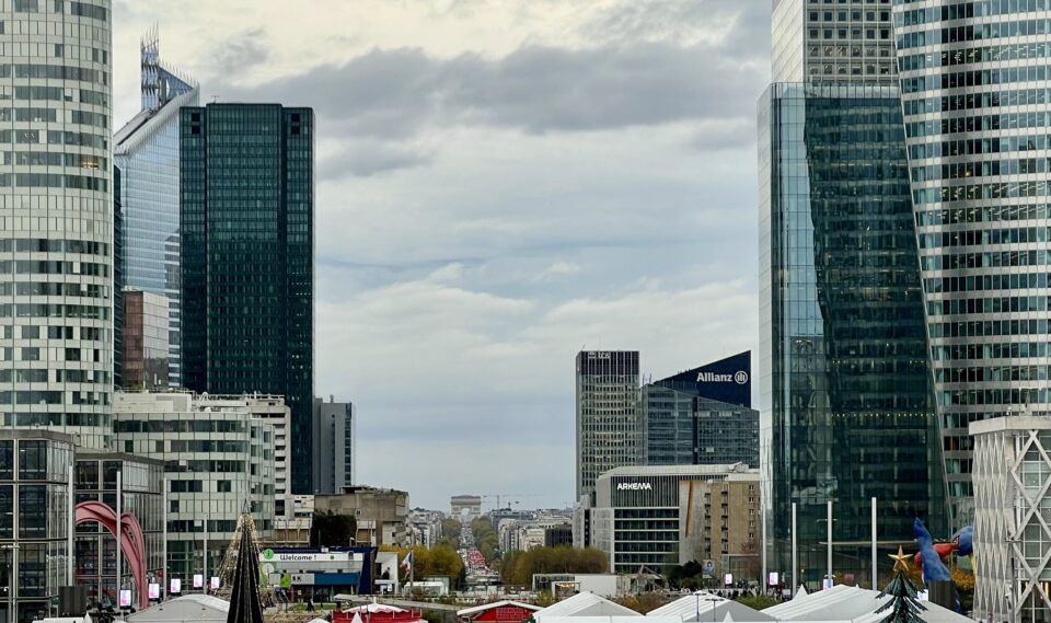 Alweer de laatste volledig dag in Parijs. Siel haalt verse croissants in het winkeltje. Lekker ontbijten. Wat puzzelen, nog wat met de foto’s pielen. Siel pakt de fiets en gaat weer een soortgelijk rondje doen als gisteren. Weer naar Sennelier, nu een klein schetsboekje gekocht. En nog wat anders soortgelijke winkels bekeken. Ik pak de fiets en ga naar La Defense. Helaas triest en bewolkt weer, en ze zijn bezig om allerlei kerstkramen neer te zettten. En ik wilde de kubus in maar die is gesloten voor publiek. Dus er is niet veel van de Axe de Defense te zien. In de verte de Arc de Triomph. Er komen wat spatjes dus maar snel terug naar de camper. Siel is inmiddels ook weer gearriveerd. We doen een borrel terwijl de regen los barst. Daarna een hapje eten in het camping restaurant.