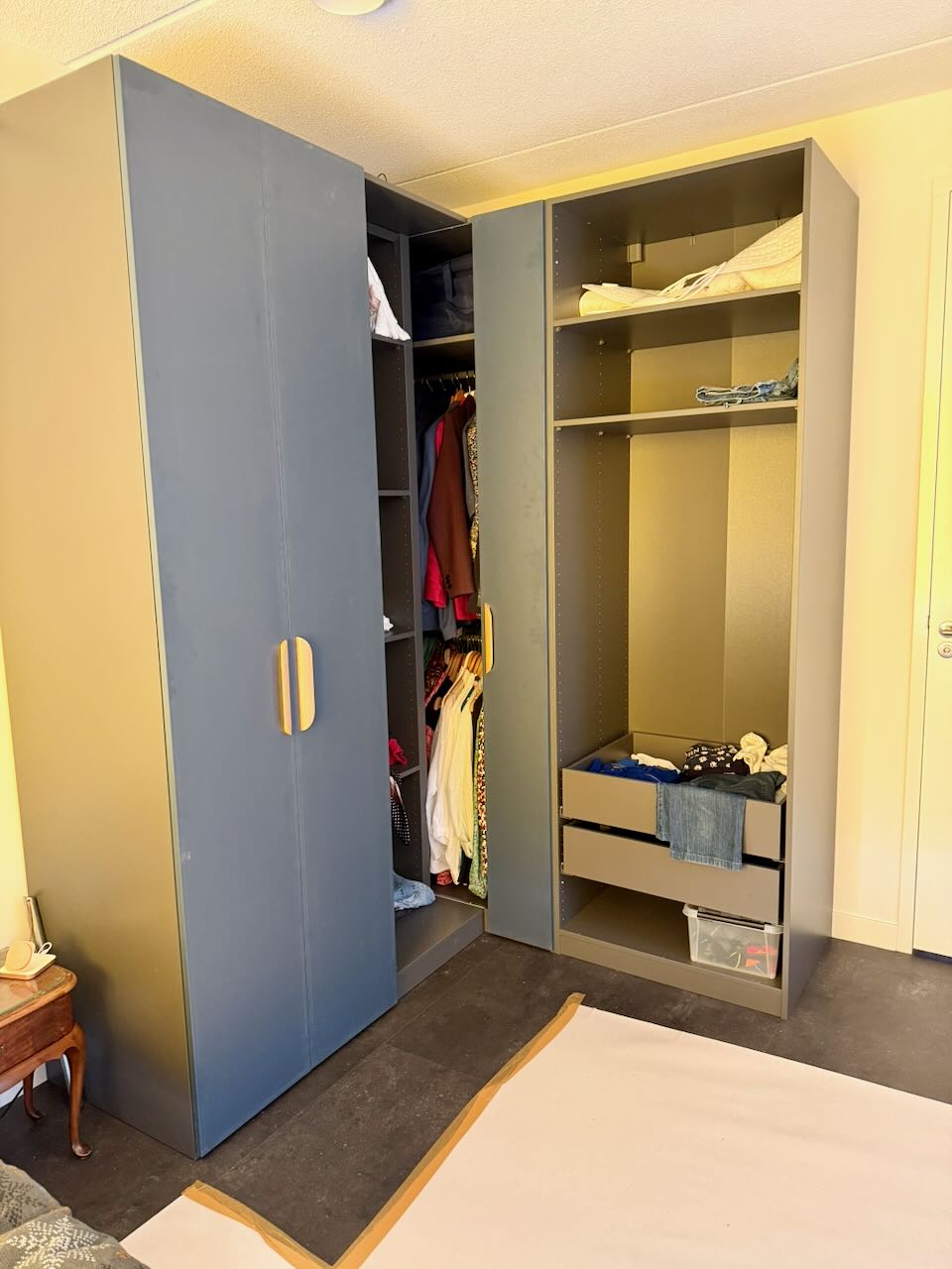 En weer rond 8 uur eruit. Volgende week gespekt met Veneta over de gordijnen, en dan nog even wachten totdat de verduistering gordijnen er hangen. Siel gaat even naar de Appie. Ik doe wat administratie. En wachten op de inbouw LED-dimmer. Voor de 10 spotjes in het plafond Ze geven nl. wel erg veel licht. Zelf monteren, en dan hopen dat het werkt. Eind van de middag (tussen 15:16! en 16:16 volgens hun planning) worden de deuren voor de Pax kasten gebracht. Dus weer wat te klussen. En dan vervolgens alle kleren opruimen, en wat niet in de kast kan? Helaas missen we een paar scharnieronderdelen waardoor er 2 deuren niet gemonteerd kunnen worden. En twee andere onderdelen passen niet goed, waardoor we een hoekdeur niet kunnen monteren. Morgen even bellen. Dus er hanen nu 3 van de 6 deuren. Wel een mooi kleur. En de LED dimmer werkt ook zowaar, had Siel niet verwacht. Blij mee. ’s Avonds Nederlands Elftal kijken, oefenen tegen Ecuador, altijd lastig.