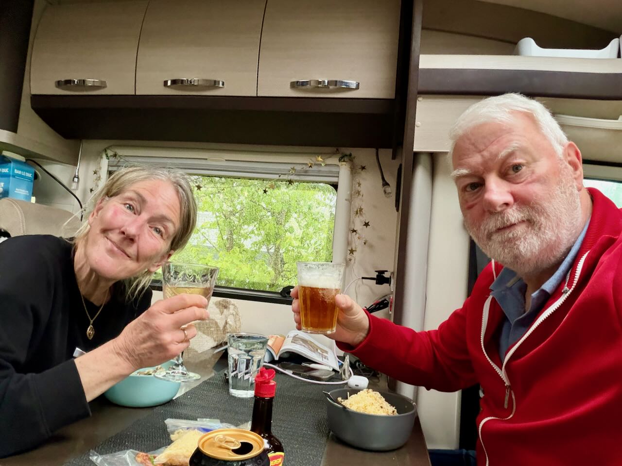 Geen grondwerkers, maar wel bijtijds op. Ontbijtje en dan de camper vullen. We gaan een paar dagen op pad, pas 29 April moeten we terug zijn. Even wennen waar alles staat wat mee moet, of we kunnen het niet vinden. Zoals de TomTom, en mijn DJI Mini drone. Die zullen nog wel in één van de 50 onuitgepakte dozen zitten. De fietsen gaan even door de woonkamer, daarna gelijk stofzuigen. Maar tegen 10 uur zit alles erin en kunnen we op stap. Siel pakt de Kona, en kan nog even langs de Cannenburg voor een antislipmatje. Dan door naar het Station in Almere Poort. Daar ben ik inmiddels ook aangekomen en 5 minuten later komt Selene met de trein aan. Die mag de Kona de aankomende weken even lenen. Handig als ze zondag met Sol naar Ahoy gaat. Wij rijden vervolgens naar Elst, Camping ‘De Grote Bredelaar‘. Bij een geitenboerderij en met een winkel die door de week gerund wordt door verstandelijk beperkten. Die hebben kaas, vlees, eieren enzo te koop. We zijn hier al eerder geweest. Mooie omgeving en niet te ver van Arnhem vandaan. Wel even wennen zo zonder Sammie. Maar ook wee een leeg kastje. Siel gaat aan de wandel en ik lees de krant. Een beetje last van mijn behandelde wratjes. ’s Avonds aan de pasta met zalm en om 21 uur voor de ‘buis’; Heracles – Ajax kijken.