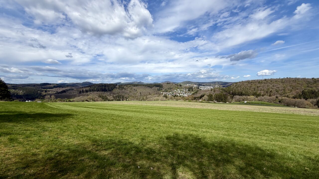 Siel wandelt om 08:30 naar de Bio bakker in het stadje, en is 15 minuten later weer terug met 2 croissants en 2 broodjes. Lekker ontbijten. Het is weer redelijk weer vandaag, zo’n graad of 18 en een beetje bewolkt. We stappen op de fiets voor een rondje richting de 3 vulkaankratermeren. Ook nog even een kleine uitkijktoren beklommen. Mooi uitzicht over de heuvels. Op de terugweg gestopt in Daun bij het Kroatische Restaurant Burghof voor een lekkere lunch. Salade resp. een dubbele Jägerschnitzel. Altijd lekker. Dan nog een paar inkopen doen bij de Edeka en in de middag buiten voor de camper nog wat lezen, en vervolgens wat schilderen in de camper. Ik laat mij van mijn creatieve kant zien. Het blijkt dat we oplader van de fietsen niet hebben meegenomen. Dus we kunnen nog maar ervan of 50 fietsen de rest van de week. ‘s Avonds een simpel broodje. Een spelletje Tantrix, 19-18 is de uitslag. Dan wat op Internet en verder lezen.