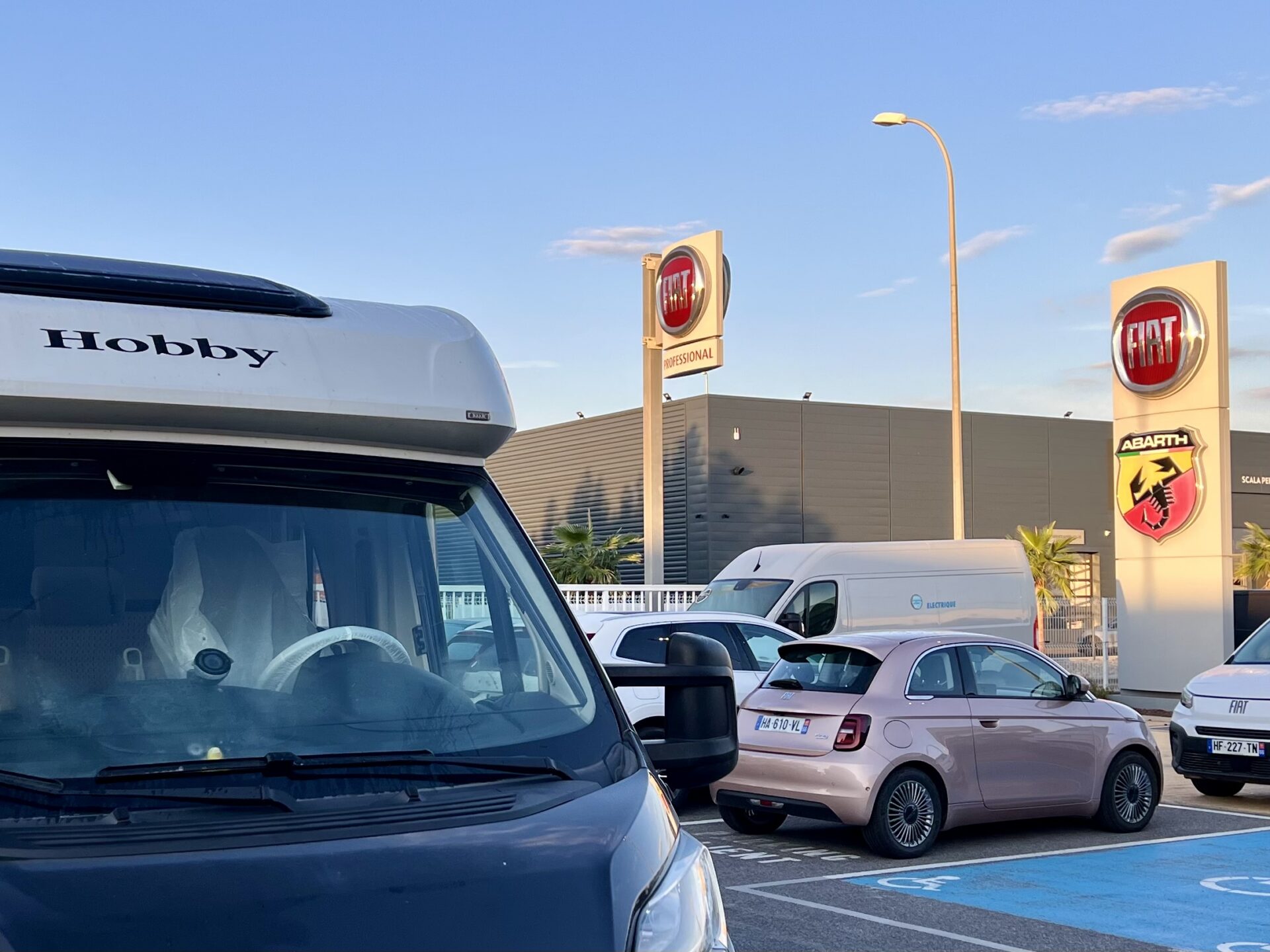 Het is nog donker als de wekker midden in de nacht om 7 uur af gaat. We doen een snelle koffie, lozen water en toilet en wachten voor de poort van de camping die pas om 8 uur open gaat. Vervolgens op naar de Fiat garage in Perpignan. Afspraak om 08:30 en we zijn mooi op tijd. Ze gaan een Diagnose uitvoeren, duurt ruim een uur. Het lijkt erop dat de vloeistof in de versnellingsbakregelaar verouderd is (klopt, 8 jaar oud, net zo als de camper), en bij een lange rit te heet wordt en problemen kan geven. Tenminste ik denk dat begrepen te hebben uit het Frans / Engels van de monteur. Anyway vloeistof laten vernieuwen, en hopen dat dit het euvel verhelpt. Om de hoek zit een hele, hele grote Auchan, dus een mooie gelegenheid om wat boodschappen te doen. Terug op de camping water ingenomen, want we verlengen ons verblijf met nog 3 dagen staan. Het is zonnig en 25 graden en niet verkeerd dus. Na de lunch een beetje zonnen, rondje meer wandelen (Siel) en lezen (ik dus). ‘s Avonds aan de vis van de bbq en vervolgens De Graafschap – Almere City kijken. Altijd spannend. Helaas, wederom verlies; 3-2. Ik heb een hard hoofd in promotie.