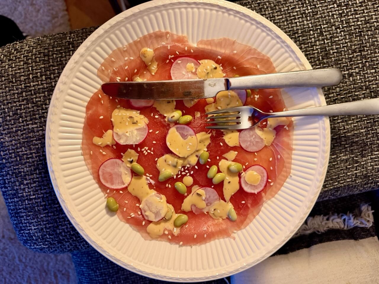 Lekker uitslapen. Vandaag alweer 36 jaar geleden dat we in Landhuis de Oliphant in Charlois elkaar het JA-woord gaven. En we vinden het nog steeds wel prettig bij elkaar. Maar 36 jaar is niks speciaals dus afgezien van een klein gebakje doen we niks bijzonders. En in overleg met de bouw gaan we de oplevering van woensdag a.s. verplaatsen. We vinden het niks dat we een ‘gat’ hebben vanuit de keuken naar de berging omdat de kozijnen en de deur niet geleverd zijn. Niet besteld waarschijnlijk. En we hebben geen haast dus het komt niet slecht uit. Wel vandaag als de sodemieter de aanvragen voor stroom, verwarming en verzekering annuleren, want dat komt nu voor rekening van de bouwer. En ook de geplande levering van de keuken in week 2 gaat on-hold. Nog wel even aan Vereniging Eigen Huis juridisch advies gevraagd of we de opslagkosten daarvan kunnen verhalen, maar dat gaat hem niet worden. ’s Avonds aan de tonijn carpaccio.