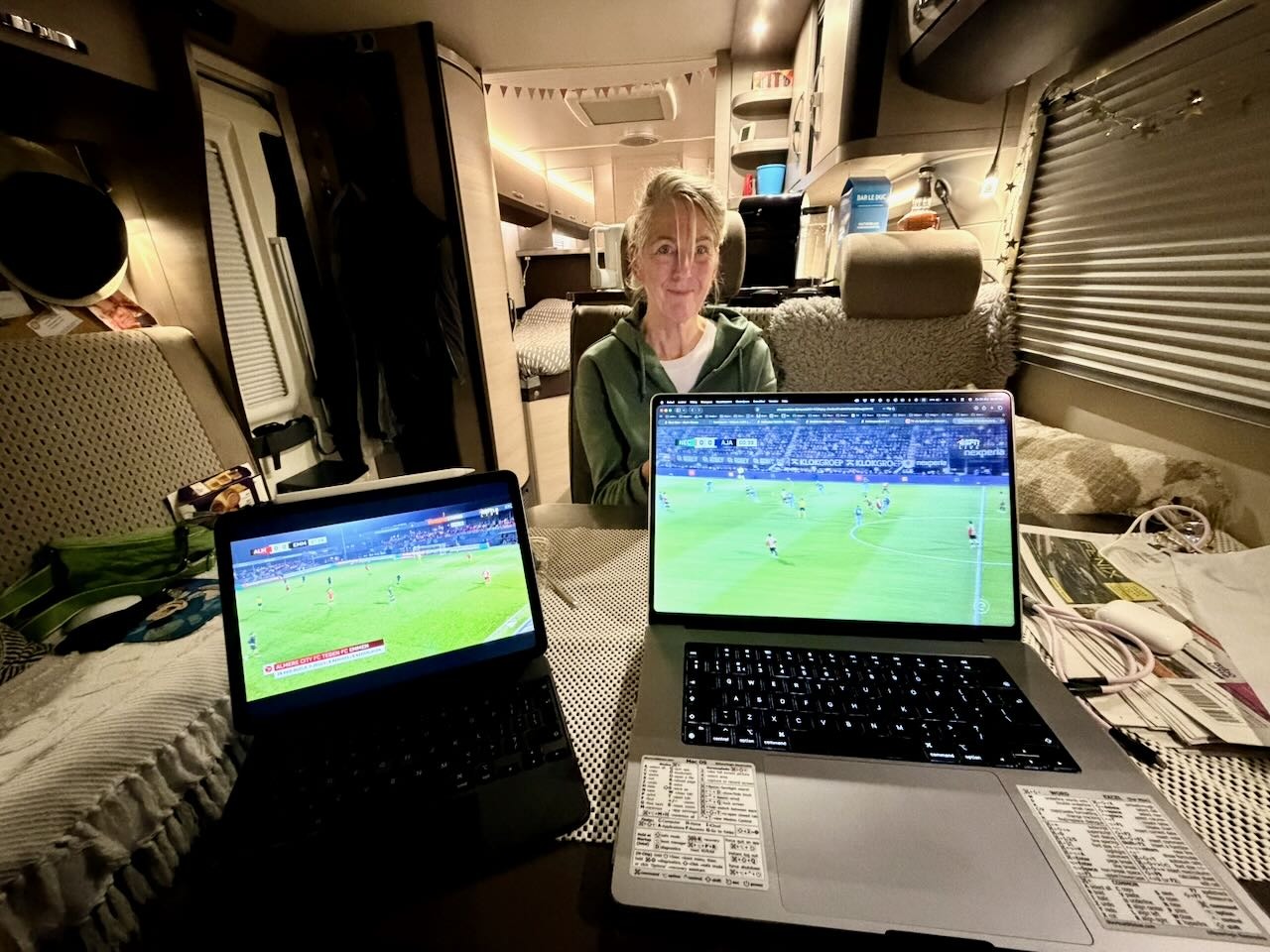 We zijn bijtijds op, rond 8 uur. Vanaf 08:30 (maar het wordt 10:00 uur) kan er een wagen met servies komen. Selene & Jordi vieren vandaag met de Vriendenclub hun jaarlijkse Kerstmis diner. En gevraagd of dat bij ons kon, zoals al zo vaak eerder het geval was. En de laatste keer hoogstwaarschijnlijk. E ze houden het simpel, niet alleen het servies is geregeld, er wordt ook niet gekookt. Om 19 uur komt de catering langs. Wij gaan in de ochtend de camper pakken. Ik flans vlug nog een diashow throw-back van oude foto’s van de Vriendenclub in elkaar. Altijd leuk om terug te kijken. Wij maken e.e.a. in orde voor vanavond; 13 stoelen om de tafel. Bubbels in de koelkast, kerstlampjes aan enz. Dan gaan wij op pad naar de camperplek in Den Bosch. Toevallig is daar ook deze week het 3FK Serious Request Glazen Huis. Gaan we morgen even kijken. Siel maakt een heerlijke ravioli met gehakt, resp. garnalen. Om 20 uur staan de MacBook en iPad gezamenlijk naast elkaar, want NEC – Ajax en Almere City FC – Emmen staan tegelijk op het programma. Ajax knoeit dure punten: 2-2, maar Almere City FC doet goede zaken; 4-2 overwinning en op naar plaats 5!