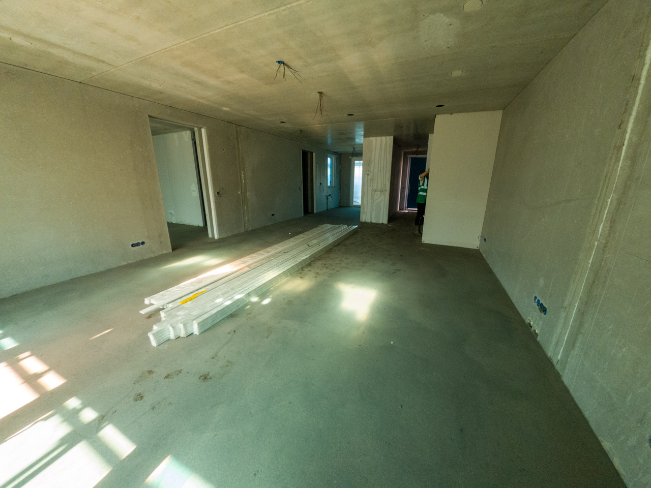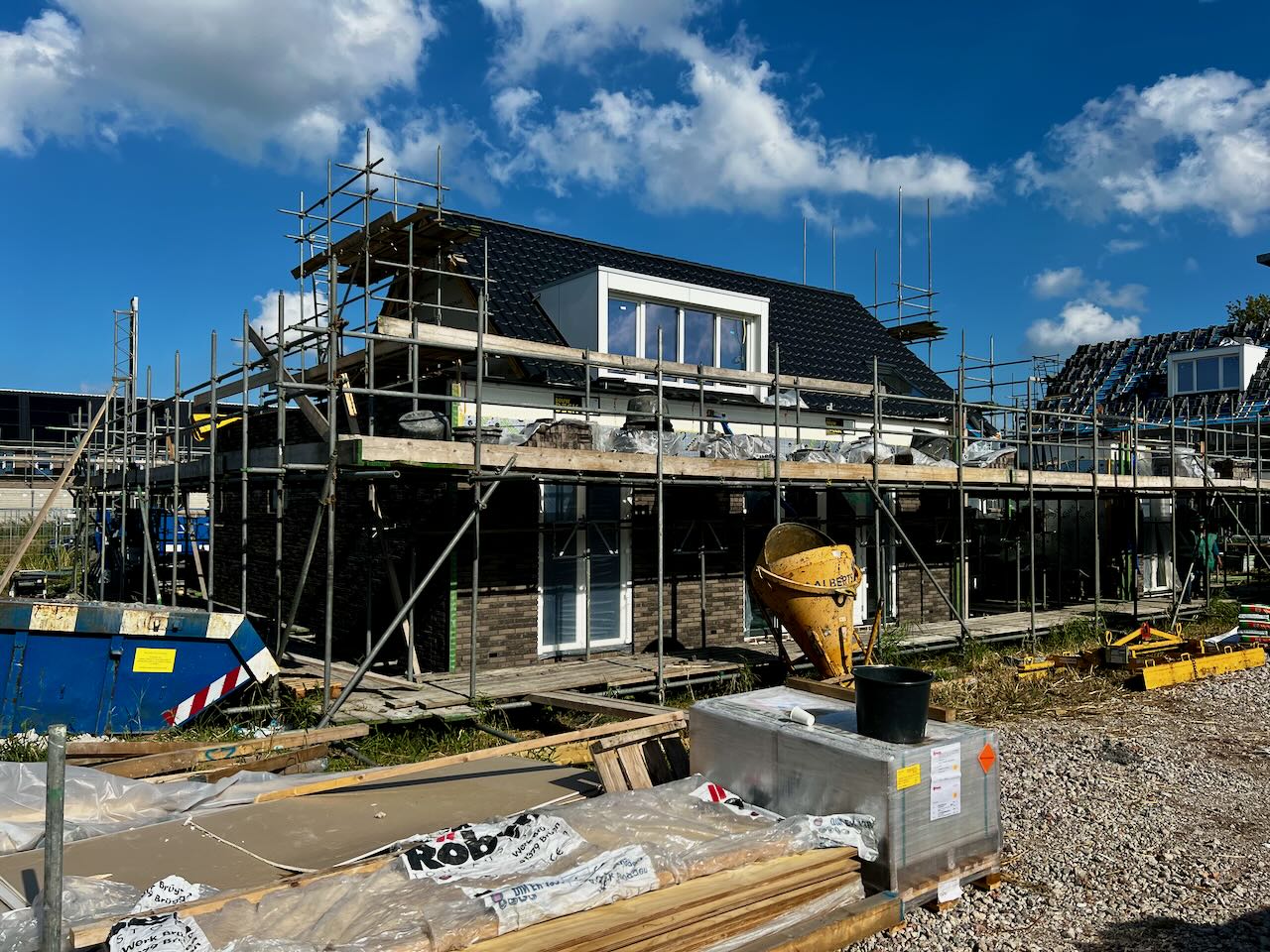 Vroeg op toevallig. Spannende dag vandaag. Om 14:30 worden we verwacht in Lelystad en kunnen we de nieuwe woning in aanbouw bezoeken en betreden. Hij is inmiddels wind en waterdicht, en ook alle dekvloeren zitten erin. Vooraf even bedenken wat we willen checken, lasermetertje mee om wat maten op te nemen. En fototoestel natuurlijk voor wat impressies. Helm op en vest aan, en alles goed bekijken. Prima indruk gehad van de grootte en hoe het er straks min of meer uit gaat zien. In de keuken mis ik een aansluiting en dat gelijk doorgegeven. Komt goed zegt de projectleider. Boven is het 4 meter hoog en komt er geen plafond. Dus hoge kast waar ik alle whisky in kwijt kan. Ook bij Siel wordt het nog lastig behangen. Wel erg groot met haar dakkapel XXL. Update over de opleveringsdatum; dat gaat voor de Kerst worden hoogstwaarschijnlijk. Nog wel onder voorbehoud van de nutsvoorzieningen, maar ook dat lijkt geen probleem te zijn.